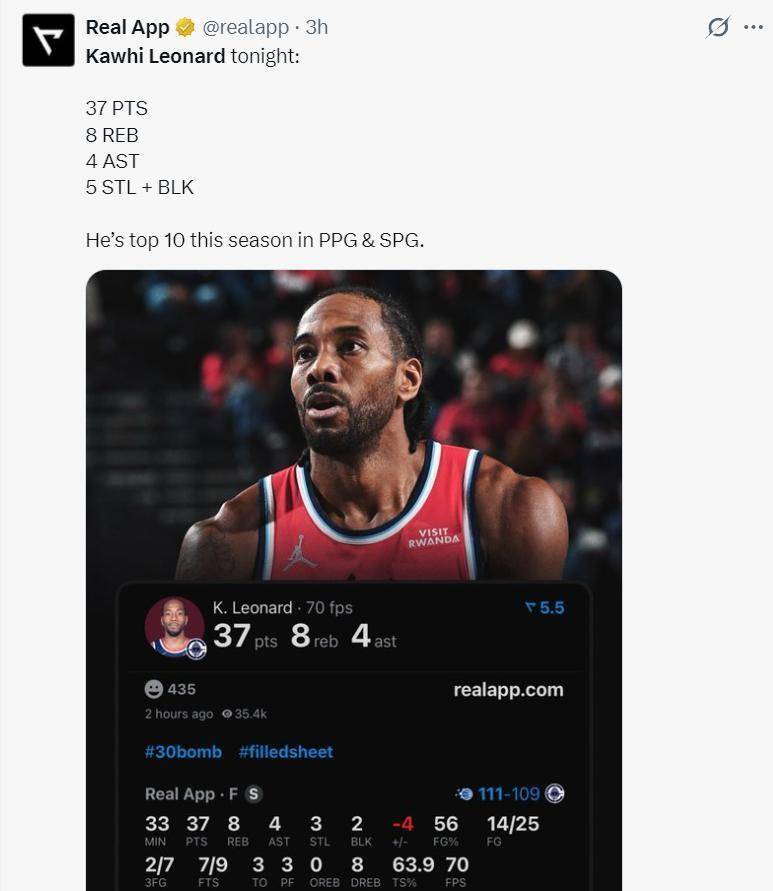 回顾整场比赛,伦纳德倾尽所有。他在场上奔波近33分钟,25次出手便如精准的制导导弹般命中14球,轰下全场最高的37分,同时还贡献了8个篮板,4次助攻,在防守端更是送出3次抢断和2次盖帽,成为球队攻防两端无可争议的核心。这更是他连续第36场比赛得分突破20分大关,创造了一项令人惊叹的个人纪录。此役过后,他追平了快船队史第二长的连续得分20 场次纪录,仅次于传奇巨星鲍勃·麦卡杜在1974-75赛季创下的辉煌战绩。与此同时,他在个人职业生涯最长连续得分纪录上的步伐也从未停歇,而在这场比赛中,他还悄然超越了贾马尔·克劳福德,荣升为队史三分命中总数榜的第四位。